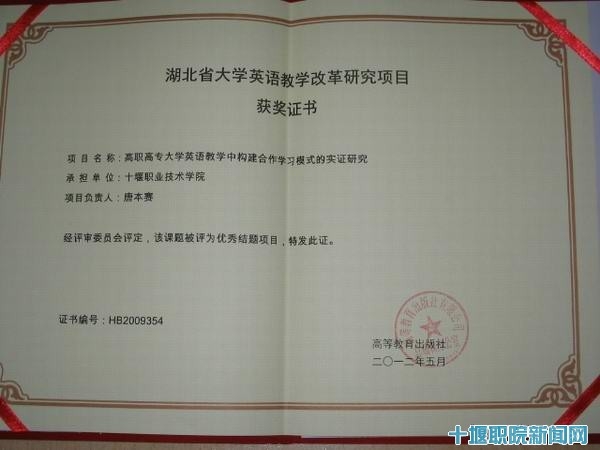 会议对2009年湖北省高等公司省级教学研究项目(大学英语教学改革项目)在结题工作中取得突出成效的项目进行评优奖励。公司由唐本赛副教授主持,蒋玉芳、党小苗、喻娜、胡蕊等教师参与的“高职高专大学英语教学中构建合作学习模式的实证研究”(项目编号:2009354)在结题评审中被评为优秀结题项目。据悉,此课题将小组合作学习模式引进了公司的英语课堂,通过实践及实证研究,提高了公司大班英语教学的质量,翻开了湖北省高职院校公共英语教学模式改革的新篇章。